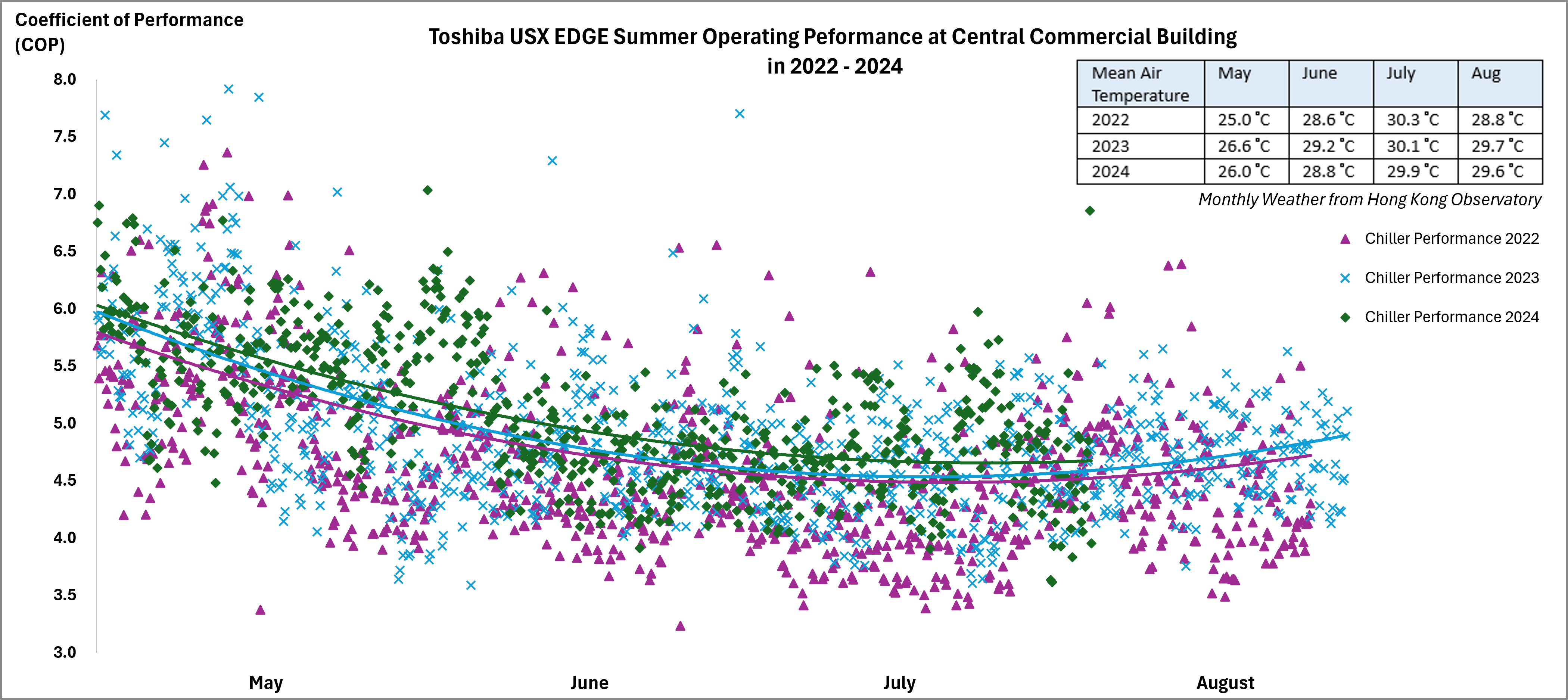 Not only did Dah Fung Hong make the right equipment choice for client through their detailed chiller plant design & build proposal, but also completed the chiller replacement work with strong competency and proficiency. Their close connection and communication with TOSHIBA factory during the project implementation were absolutely a plus to facilitate the work completion while fulfilling the chiller performance expectation. After the installation work, Dah Fung Hong was also commissioned for maintenance and operations of the chiller plant, by which the WIFI LAN connectivity of the chillers was activated to enhance the service quality. A dedicated application was developed to collect data, like power consumption and inlet/outlet temperature, on tablet or mobile device, allowing for the monitoring and control of optimal operations.