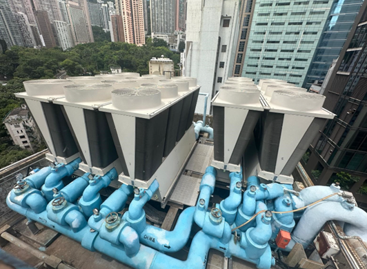 The high density and compact nature of Hong Kong’s building environment always pose challenges to aging infrastructure retrofit, replacement and upgrading works of HVAC system, particularly for organizations with a remit to focus on sustainability and minimal environmental impacts. Recently, Dah Fung Hong Holdings Company Limited (Dah Fung Hong), one of the leading HVAC solutions experts proficient in HVAC system design and retrofitting, successfully completed the chiller replacement project on a slender and compact rooftop of a commercial complex in Central, overcoming all the challenges to solve the engineering problems plaguing customers for years.